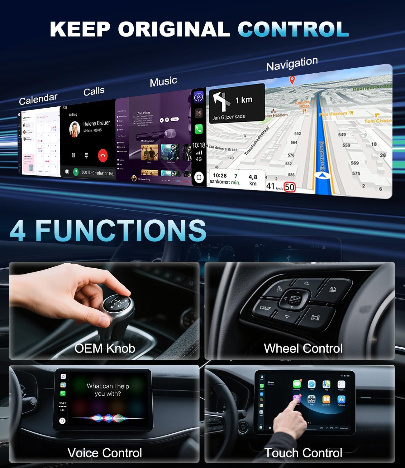 هذا المحول اللاسلكي يدعم جميع أوضاع التحكم الأصلية للسيارة، مثل التحكم الصوتي عبر Siri، السيطرة عبر المقود، التحكم عبر القرص والشاشة اللمسية. أنشئ بيئة قيادة نظيفة ومنظمة مع هذا المحول اللاسلكي المدمج في CarPlay.