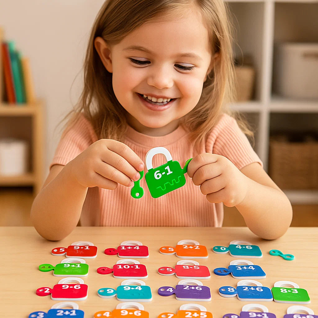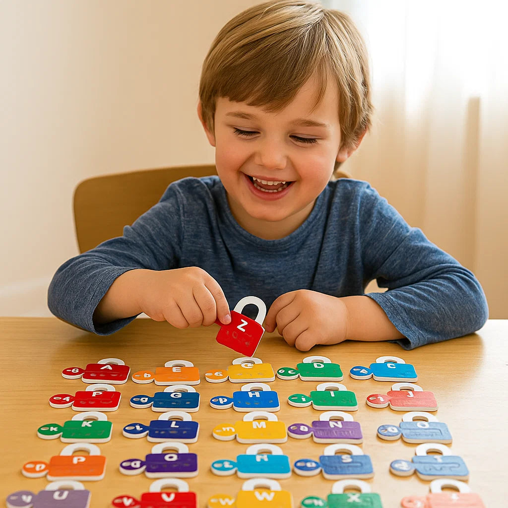 Con el juego de aprendizaje de letras y matemáticas, cerrojos y llaves, aprender se convierte en una emocionante aventura. Los niños descubren letras, números y formas mientras encuentran juguetonamente las llaves adecuadas para los cerrojos correctos. Este juego de aprendizaje combina diversión con educación y fomenta la curiosidad natural de tu hijo, tal como lo contempla el principio Montessori.